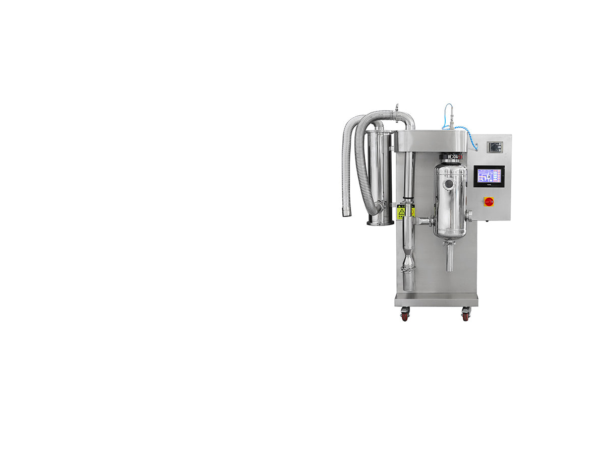 Spray dryer is mainly used to produce trace particle powder for universities, research institutes and enterprises' laboratories in food, medicine and chemical industry. It has broad spectrum applicability to all solutions such as emulsion and suspension, and is suitable for drying heat-sensitive substances such as biological products, biological pesticides, enzyme preparations, etc. The material is heated only when they sprayed into mist size particles, so they are just instantaneously heated and can keep these active materials maintain its active ingredients.
