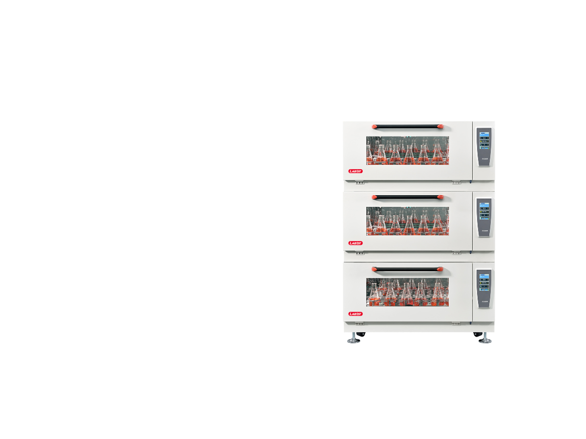 The LAB1ST ISS incubator shaker is versatile enough to be used as a single unit on the floor or stacked in configurations of two or three units. It is available in three different sizes and offers both orbital and linear shaking modes (ISS165/165R), with options for 25mm or 50mm shaking throw to accommodate diverse requirements. This compact, user-friendly, and programmable incubator shaker is an invaluable tool for cultivating cells, tissues, or microorganisms in your laboratory. The "stackable" feature allows multiple units to be placed one on top of the other, optimizing space in the laboratory.