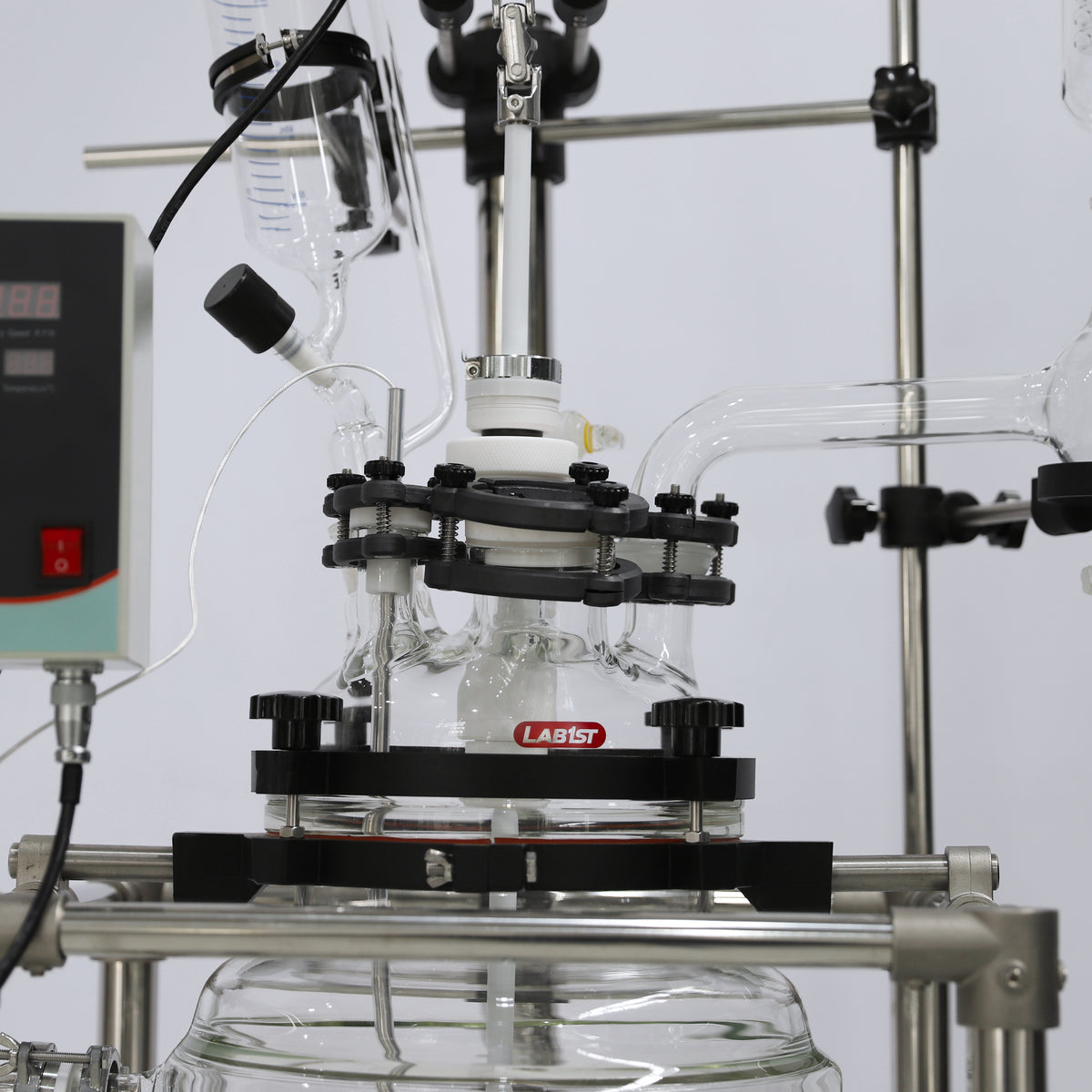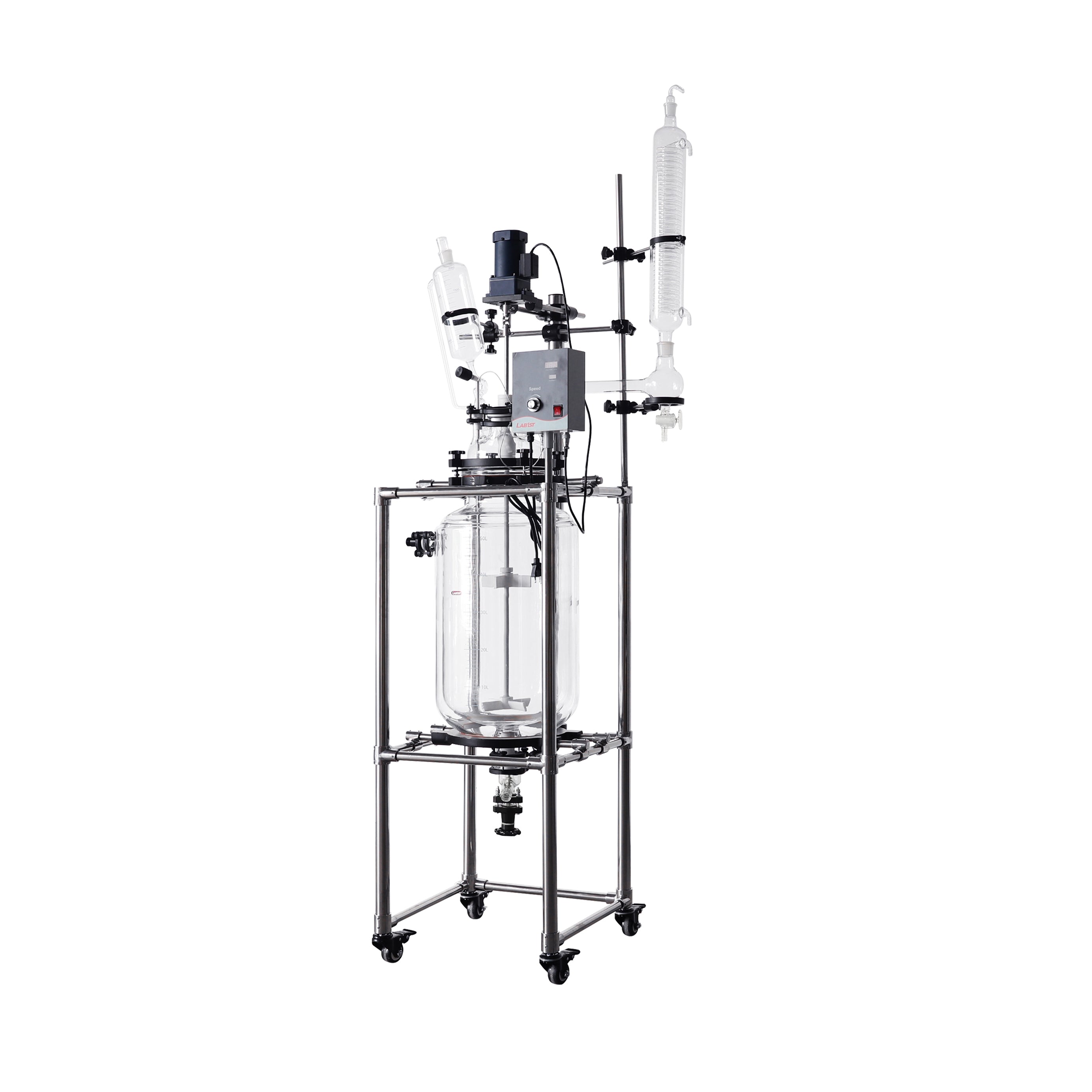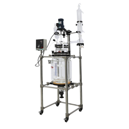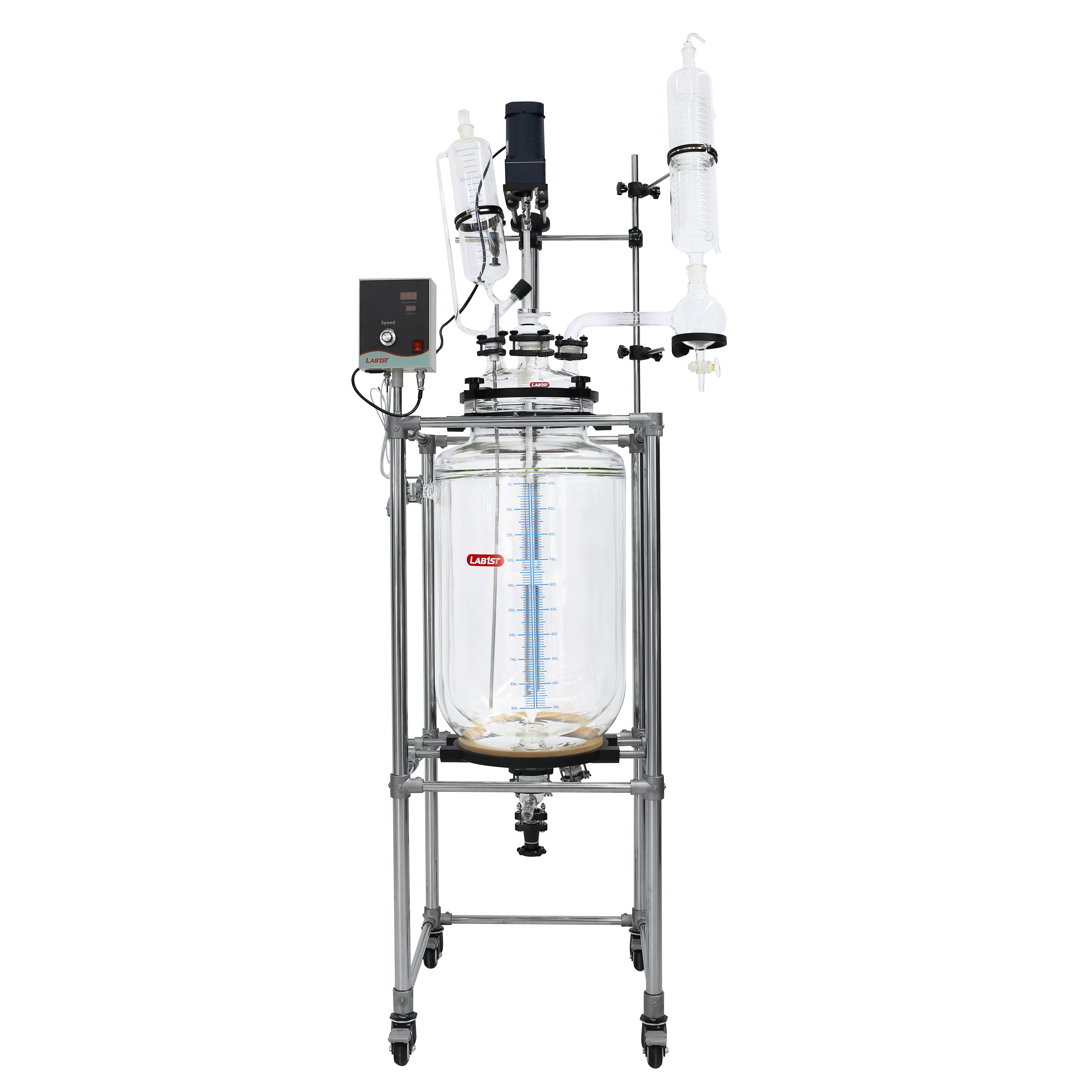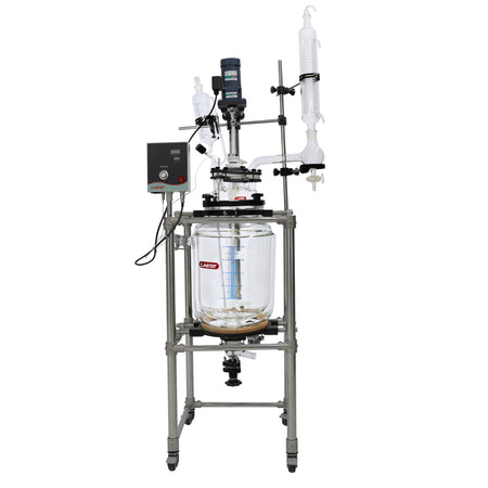 Lab1st JGR-L series jacketed glass reactors are designed as a multi-purpose reaction platform with controlled temperature and pressure environment, for both laboratory and scale-up applications. Each reactor consists of a corrosion resistant jacketed glass reaction vessel, PTFE coated variable speed stirrer system, temperature probe and digital display, and other accessories like feeding funnel, coiled condenser and bottom discharge valve.